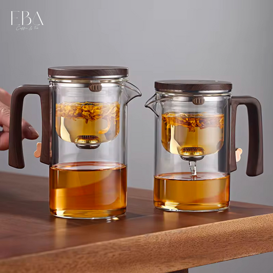 إبريق شاي زجاجي أنيق بسعة 700 مل مع مقبض خشبي ومصفاة عملية