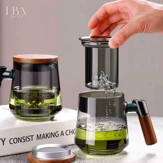 كوب شاي زجاجي بسعة 500 مل مع مصفاة وغطاء وماسك خشبي